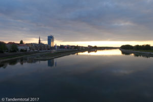 Nachdem wir tags zuvor eine recht weite Distanz nach Donji Miholjac zurückgelegt hatten, folgte eine recht kurze Etappe (ca.50 km) nach Osijek. Daher legten wir in einer kleinen Stadt eine Pause ein um über einen Markt zu laufen. Soweit kamen wir dann aber gar nicht mehr. Zuerst schenkten uns zwei Standbetreiberinnen zwei Langosch und zur gleichen Zeit sprach uns eine Frau, die mit ihrem Sohn unterwegs war, begeistert an. Nachdem der Sohn eine Runde mit Paul um den Platz gedreht hatte (auf meinem Tandemplatz), wurden wir eingeladen mit zu einem Pfadfindertreffen zu kommen, welches die Frau organisierte. Dort wurden wir mit warmen Getränken versorgt, erzählten von unserer bisherigen Reise, bekamen ein Lied vorgesungen und spielten ein Spiel mit den Kindern. Nach einem anschließenden Gruppenfoto machten wir uns wieder auf den Weg und erreichten Osijek am frühen Nachmittag. Bei unserem Couchsurfer Dario bekamen wir leckeres Essen und führten interessante Gespräche über das Deutsche und Kroatische Leben, da Dario in den 90er Jahren aufgrund der Balkankriege in Deutschland gelebt hat. Am Abend führte er uns dann noch mit seiner Freundin durch die Stadt und in ein Lokal zum Billard spielen.